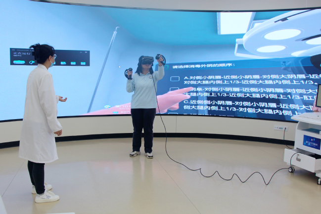 临床护理教研组和妇儿护理教研组分别从培养目标、专业课程、就业方向、师资队伍等几方面,为同学们介绍了我校护理和助产专业的概况,实训教师与志愿者分别带领同学们体验了臂式血压、心肺复苏、模拟孕肚、四步触诊、AR模拟病房等实训操作项目。