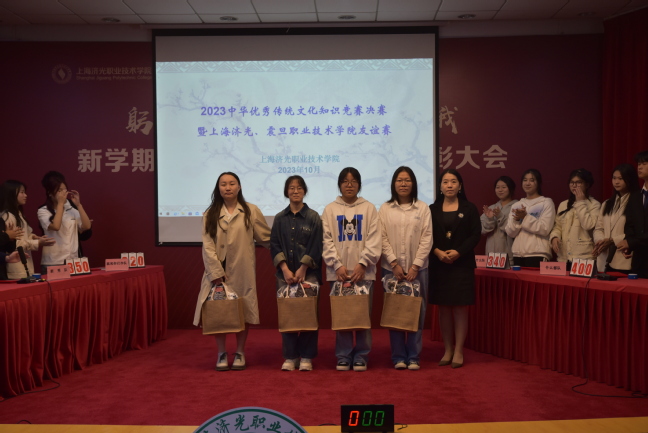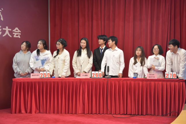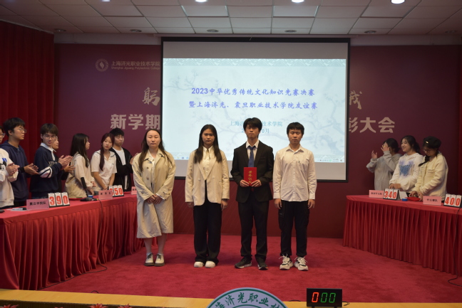 10月20日复赛举行。复赛以现场问答形式进行,对参赛队伍的各项能力提出了考验。必答题测试了他们对中华优秀传统文化的基本了解,抢答题考验了他们的反应速度和深度思考,自由选择模块题为他们提供了发挥所长的机会,而风险题则是一项高风险高回报的挑战。各支队伍紧张而充满斗志,为了争夺五个决赛名额,展现出了各自的人文知识水平和团队合作精神。经过激烈角逐,23数媒2班的“新秀队”、23网2班的“何以忘忧,唯有学习队”、22护理2班的“就和你们作队”、23护理12班的“你对什么队“、23工程技术及网1班联合组成的“什么都队”五支队伍表现出色,晋级决赛。