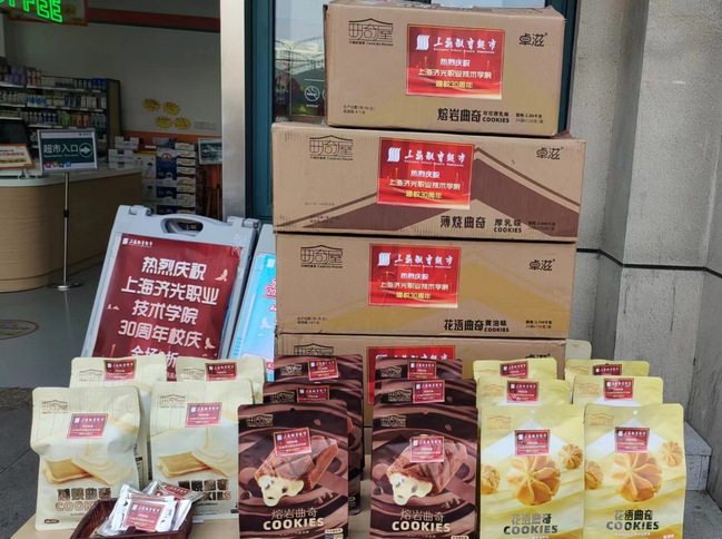 教育超市为校庆30周年举办全场折扣活动。校庆当日,教育超市准备了美味食品让同学们免费品尝,还为校庆免费提供物资,包含27箱饮料、400件乐事薯片、30箱矿水。