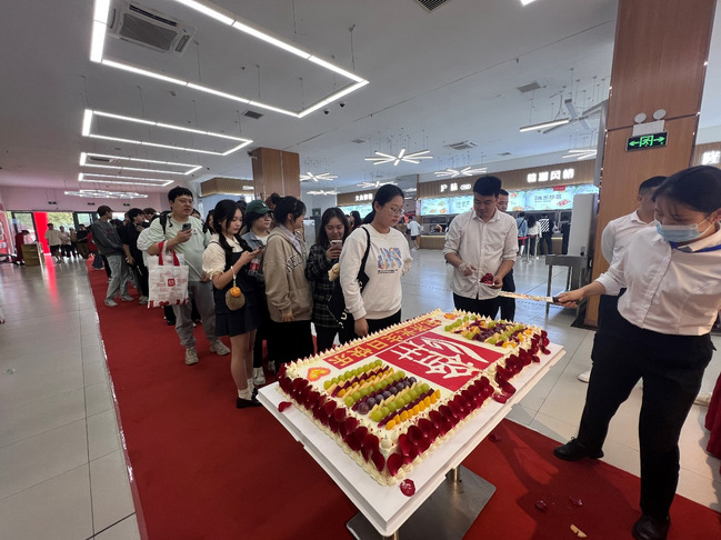 后勤保卫处联合中快餐饮精心策划校庆美食节活动。中快餐饮特地准备了校庆生日蛋糕,满载着对学校的美好祝福。胡展飞校长与学生代表共同切下校庆蛋糕,寓意学校开启高质量发展的新征程。中快餐饮为本次美食节,准备了烤全羊、捏面人、糖画、菜肴、点心、水果茶品尝等展区。
