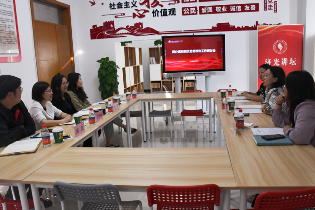 11月1日,我校在宝山校区学生一站式社区党团活动室召开了民办高职院校思想政治工作研讨会,上海思博职业技术学院党委副书记张辉、上海东海职业技术学院党委副书记王玉、上海工商职业技术学院党委副书记副校长张中美三位思政专家应邀出席会议,我校党委副书记、《“三全育人”导向下高职院校进一步完善思想政治工作体系的策略研究》课题负责人刘丽主持会议。我校学生工作部部长毛燕静、《“三全育人”导向下高职院校进一步完善思想政治工作体系的策略研究》课题组成员参加会议。