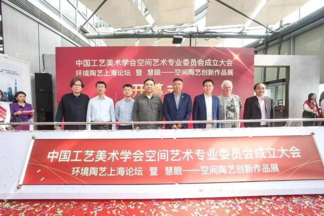 其他出席的嘉宾有上海市文创办副主任刘波英、同济大学建筑与城市规划学院院长李翔宁、中国艺术研究院文学艺术院名誉院长朱乐耕、中国建筑卫生陶瓷协会高级顾问夏高生、中国工艺美术大师李遊宇、中国工艺美术大师孟树锋、上海市浦东新区区委宣传部文化产业处副处长邹秀松、中国工艺美术协会副会长耿鸿民、上海市非物质文化遗产保护协会会长高春明、上海市轻工业协会秘书长苗华、上海工艺美术学会会长周南、联合国教科文组织国际陶艺学会(IAC)名誉主席雅克·考夫曼、联合国教科文组织国际陶艺学会(IAC)部分会员。中国工艺美术学会副理事长张心一宣读了空间艺术专业委员会成立文件和专委会顾问名单。中国工艺美术学会理事长才大颖向专委会名誉主任代表刘波英、主任蒋国兴颁发了聘书。蒋国兴主任向常务副主任郭爱和、副主任阴佳、秘书长周瑾、副秘书长曲亚琳等颁发了聘书。