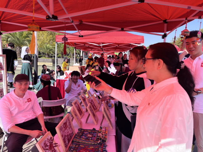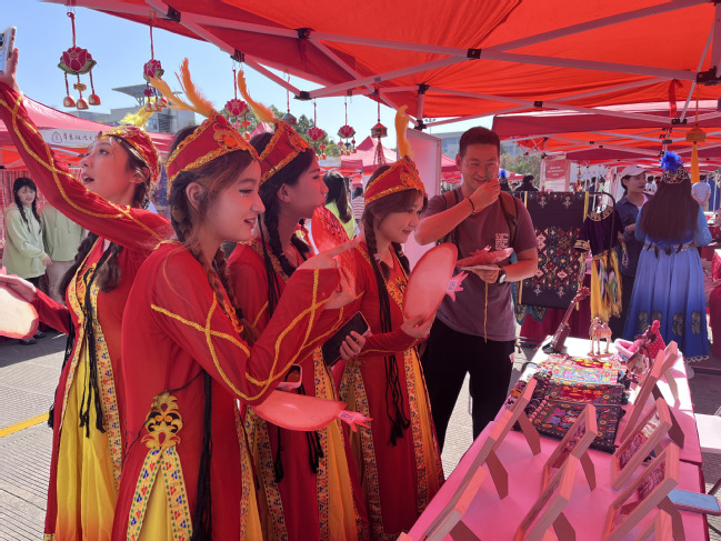 本次民族文化展示活动包含民族文艺表演、民族特色文化展示、民族游戏互动体验等。在民族文艺表演中,由9位同学带来的“石榴花开”不断掀起高潮,精彩纷呈。“民族服饰剪纸展”“看衣服服饰图片猜民族游戏”等项目吸引了大批师生驻足参与。