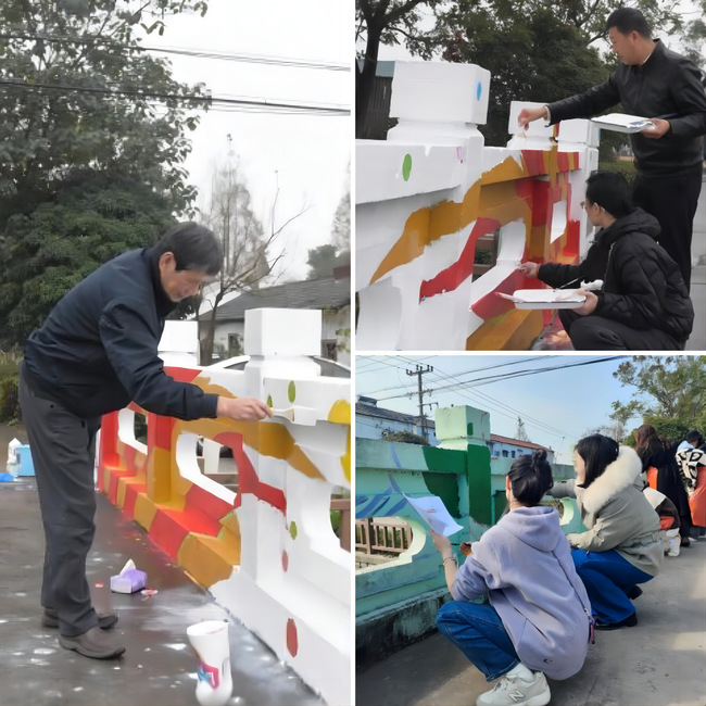 ▲我校设计创意学院赵培忠书记、杨奕彤老师和易岚岚等老师带领学生进行桥绘