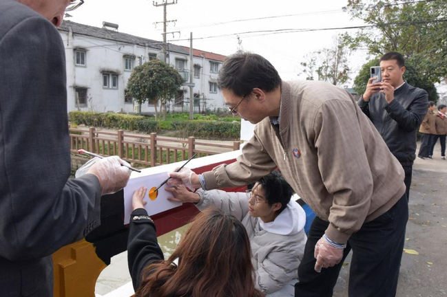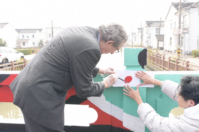 ▲西班牙驻沪总领事路易斯·卡尔沃先生参与桥绘活动