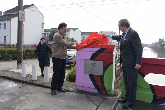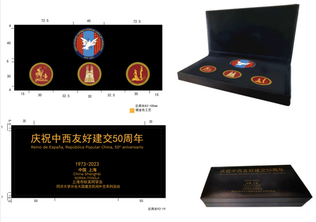 活动中首先举行了中西建交50周年纪念徽章揭幕仪式及“中西友谊桥”揭幕仪式。作为2023年度上海重要的民间外交活动,这两个项目是受上海欧美同学会和同济大学中西学院委托,并在西班牙驻沪总领事馆的支持下,由我校设计创意学院两支师生设计团队完成。