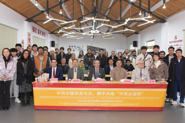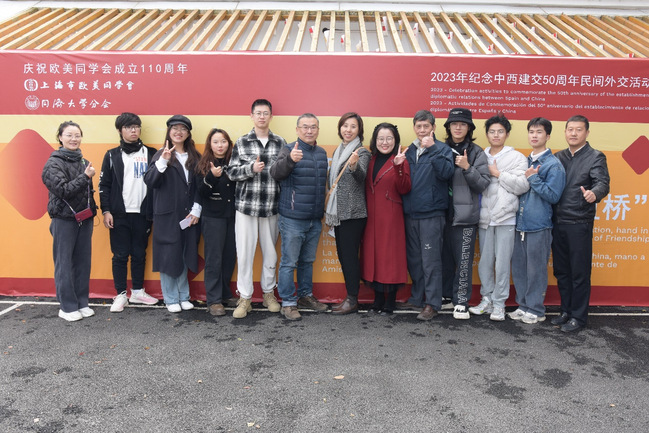 11月16日上午,由上海市欧美同学会主办,同济大学欧美同学分会、上海济光职业技术学院等承办,西班牙驻沪总领馆、西班牙驻华使馆文化处,上海松江区统战部等单位支持的“中西合璧美美与共,携手共绘中西友谊桥”庆祝欧美同学会成立110周年、2023年纪念中国和西班牙建交50周年民间外交活动在松江区新浜镇文华村成功举行。我校党委书记姜富明应邀参加了活动仪式,设计创意学院院长阴佳教授带领的两支设计团队作为“纪念徽章”和“友谊桥”主创团队,在活动仪式上全程用英语向中外嘉宾进行了设计方案的汇报展示。