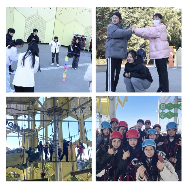 18日上午,两学院团学骨干来到东方绿舟素质拓展活动基地,“松鼠与大树”热身运动后,在教练的带领下,同学们以小组为单位开展了“合力建塔”游戏,游戏中各成员齐心协力,共同协助,有效提升了大家的责任意识和团队合作能力。而后“蜂巢塔高空探险”活动中,同学们穿戴好探险装备,认真听取教练的注意事项和操作方法,勇敢攀登高塔,越过双螺旋高空赛道、单板悬空等赛道,一路 “披荆斩棘”向上攀爬。探险过程中,两学院同学们精诚合作、相互打气,彼此鼓励,在惊险刺激中,感受到了挑战的魅力,收获了冒险的乐趣,突破了自我的设限,提升了勇气与胆量。