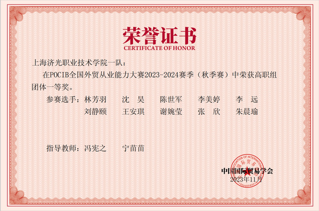 POCIB全国外贸从业能力大赛包括数字贸易B2B模块和国际贸易从业技能综合实训模块两项内容,理论与实际相结合,高度还原了外贸业务中的各种环节,让学生能够身临其境地体会外贸业务的专业性和趣味性;在数字贸易B2B竞赛模块中,各选手作为单独的模拟店铺运营者,完成店铺入驻、商品发布、交易磋商、起草订单、订单履约和营销活动等跨境电商外贸环节中的各项业务流程操作。在POCIB国际贸易从业技能综合实训竞赛模块中,各选手作为单独的进出口企业相互间进行贸易。我校参赛学生在比赛中表现出色,高质量完成了贸易选品、撰写函电、单据缮制、交易与跟单、结算支付等完整的对外贸易流程。