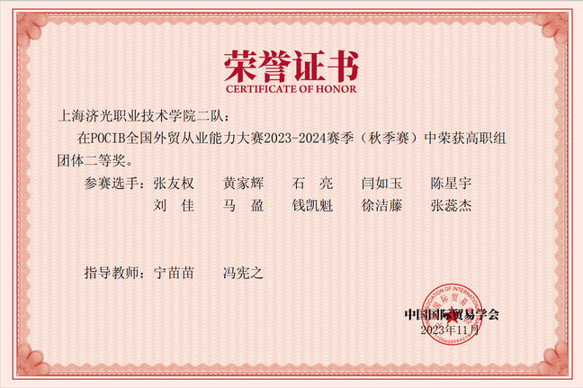 第十三届POCIB全国大学生外贸从业能力大赛(秋季赛)于2023年11月14日上午10点正式落幕。来自经济管理学院2022级关务、电商和金融的20位学生共两支队伍参赛,本次比赛全国共有373所院校、1056支队伍、共计10560名选手参加,赛程长达13天。