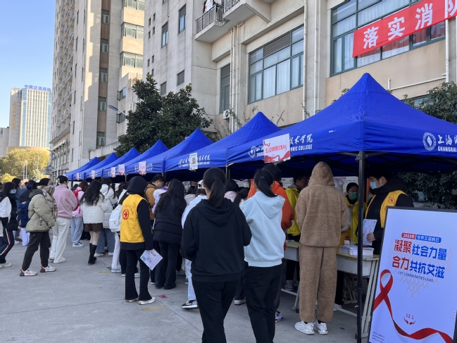 本次活动地点位于宝山校区教育超市门口前,活动设置了有关防艾小游戏、第八届艾滋病全国大学生知识竞赛、答题领取证书以及发放小礼品等环节,用喜闻乐见的方式向学生普及防艾知识。此外,为了丰富我校防艾全面宣传,特邀宝山区疾控中心、宝山区计生办、杨行镇计生办、杨行镇社区卫生中心、杨行社工点禁毒、杨行镇红十字会于12月1日上午十点莅临我校共同进行宣传防艾活动。