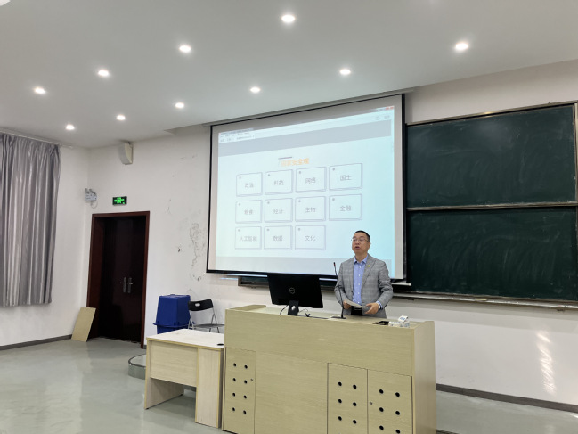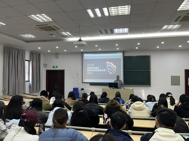 课堂上,王云飞从国家安全观出发,通过政治、科技、网络、人工智能等11个方面讲解了当前国际国内新局势,并向学生强调,作为新时代大学生要关注身边的国家安全问题,提高自我保护意识,防范潜在的安全风险。王云飞结合食品安全、消防安全、实验室安全、防诈骗、水电煤安全、交通安全等6个方面的内容,以及近年来发生的校园安全事件,对当前社会和校园的安全稳定情况进行了分析。他指出,当前学校安全稳定形势总体情况较好,但一些潜在的安全隐患依然存在,同学们要提高防范力和警惕意识,牢固树立校园安全责任意识。