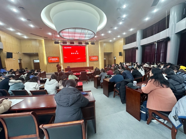 12月19日下午,我校在学校宝山校区圆形会议室召开了2023年招生就业工作总结会暨2024年招生就业工作动员会。校长胡展飞、党委书记姜富明、党委副书记刘丽、副校长王云飞、副校长孙遥、校长助理姚桂芳出席了本次会议。全体中层干部、各学院党政负责人、全体专业主任、全体辅导员参加了本次会议。会议由学生处处长毛燕静主持。
