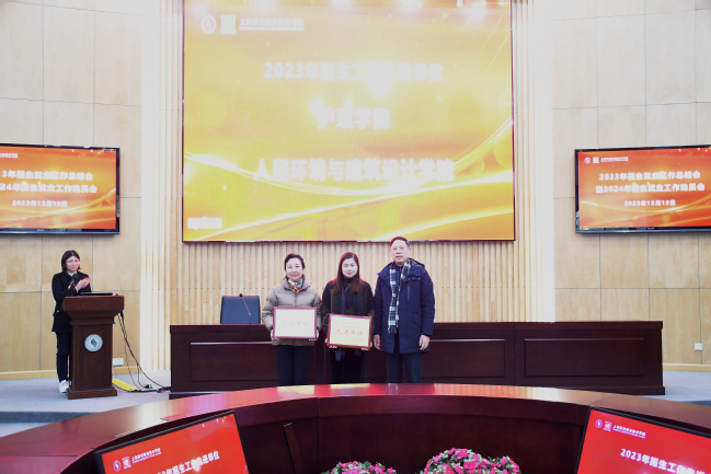 护理学院、人居环境与建筑设计学院被评为2023年招生工作先进单位,经济管理学院、人居环境与建筑设计学院被评为2023年就业工作先进单位,学校党政主要领导为获奖单位颁发了荣誉奖牌。