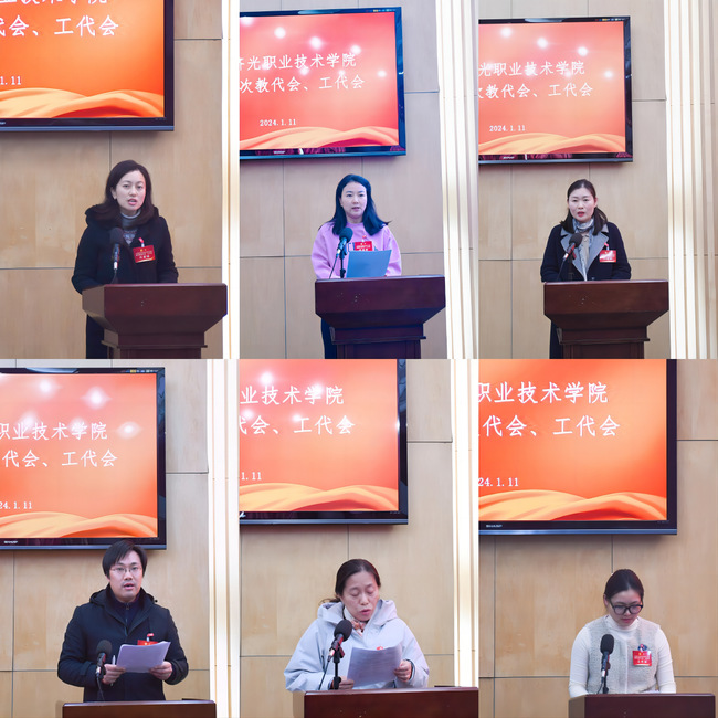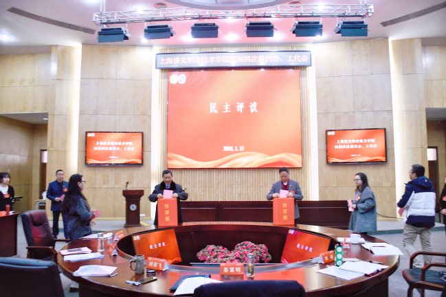 全体与会代表听取并审议了《学校行政工作报告》《学校财务情况报告》《四届三次双代会提案处理和四届四次双代会提案征集情况》《工会工作报告》《工会经审工作报告》,并以无记名投票方式表决通过了《上海济光职业技术学院关于教师岗位职责的实施意见》《上海济光职业技术学院2023年教职工薪酬改革与调整方案》。会上,全体正式代表对学校领导班子成员和领导班子进行了民主评议。