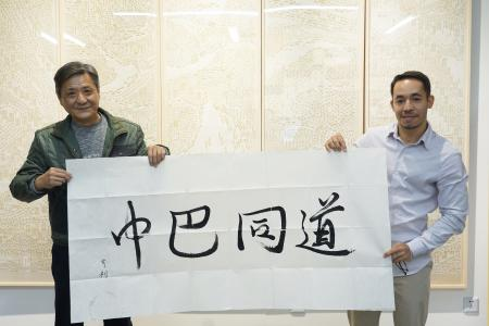 在双方的交流结束之后,巴西文化领事等一行人参观了大师工作室,济艺坊,新实训楼,尤其对陈设在校园公共空间中的艺术作品赞不绝口,对济光学院的校园文化给予了高度评价。参观过程中,爱好中国书法的刘亨利先生还兴致高昂地书写了“中巴同道”作为留念。