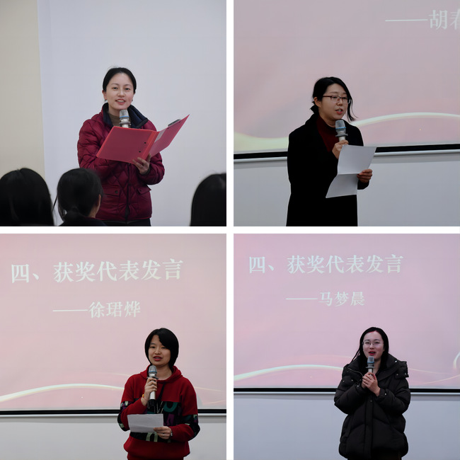 基础部马梦晨、学前教育学院徐珺烨、经济管理学院胡春宝作为获奖代表交流发言。