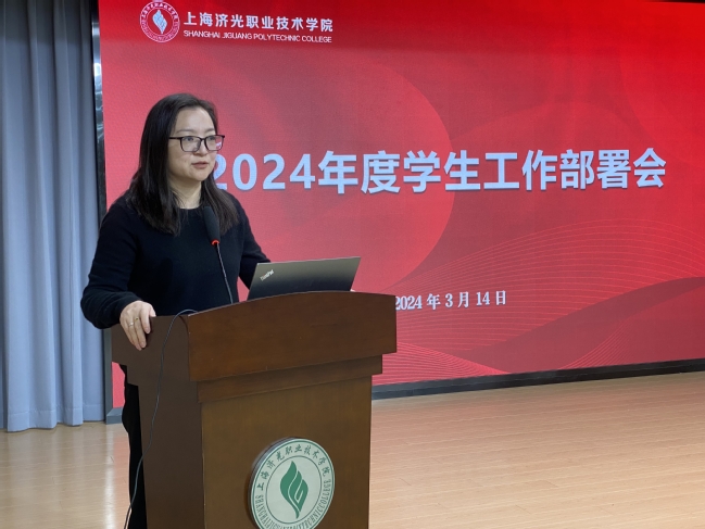 3月14日上午,我校2024年度学生工作部署会在杨浦校区会议室召开,校党委副书记刘丽出席了会议,学工部、校团委负责人,及各二级学院党总支、直属党支部书记、全体专兼职辅导员等参加会议。会议由学工部部长毛燕静主持。