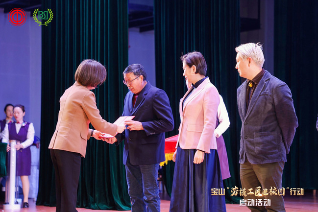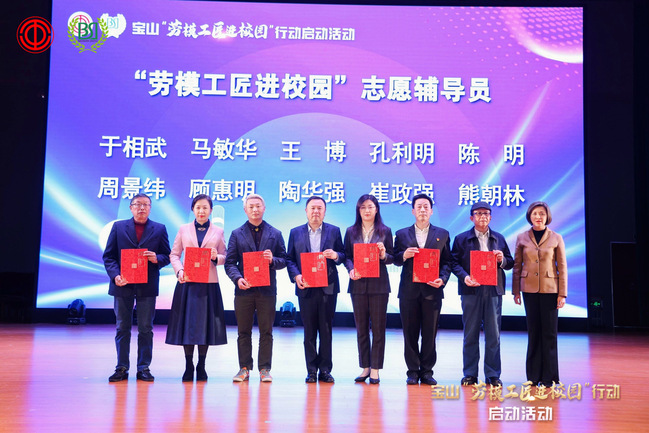 近日,宝山区总工会与宝山区教育局在上海市行知中学启动宝山“劳模工匠进校园”行动。 我校建筑工程顾惠明大师受聘为宝山区“劳模工匠进校园”首批“志愿辅导员”,宝山区人大常委会副主任、区总工会主席顾瑾为劳模工匠们颁发首批“志愿辅导员”聘书。