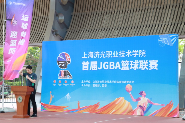 开幕式上,来自全校7个学院的15支代表队,在激扬的音乐声中依次进场。校长胡展飞在开幕式上宣布“上海济光职业技术学院首届JGBA篮球联赛”开幕,所有到场领导和教师代表、参赛队以及比赛裁判和工作人员一起合影留念。