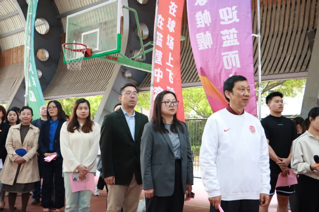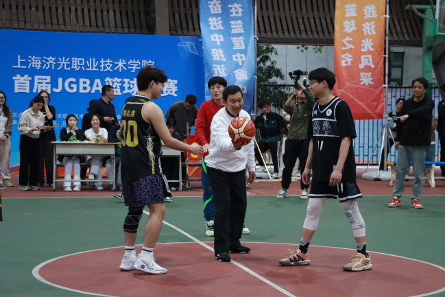4月16日下午,我校首届JGBA篮球联赛开幕,校长胡展飞、党委副书记刘丽、副校长孙遥、校长助理姚桂芳,以及各二级学院党政负责人和相关部门的领导出席了本次开幕式。