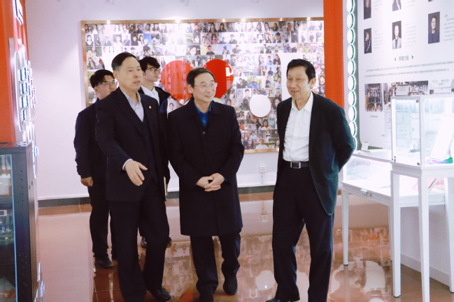 报告会前,高德毅会长在我校校长胡展飞和党委书记姜富明的陪同下参观我校校史馆。