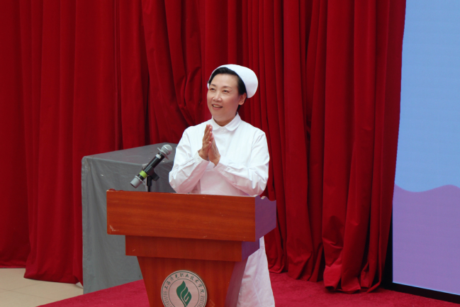 护理学院常务副院长姚淳致开幕词,她代表护理学院向奉献护理教育事业的教师们致以亲切的问候,给即将走向临床实习的护理学子们送上诚挚的祝福。希望同学们作为护理行业的未来和希望,要学会感恩、勇于承担、乐于学习,刻苦训练专业技能,为成为一名优秀的护理人才打下坚实的基础。