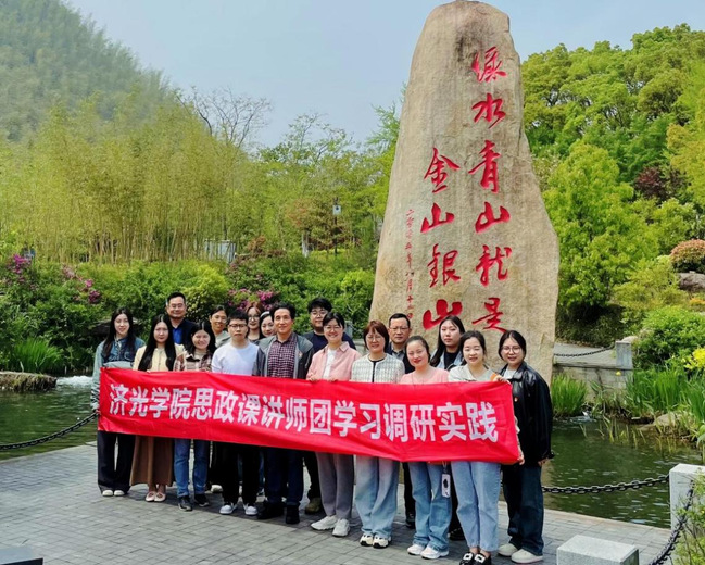 2024年是新中国成立75周年,是实现“十四五”规划目标任务的关键一年,也正值重温学习习近平总书记“3·18”重要讲话五周年之际,为深入学习贯彻习近平生态文明思想,牢固树立“绿水青山就是金山银山”理念,拓展红色资源融入我校思政育人工作的广度和深度,弘扬伟大建党精神,践行我校开门办思政的指导理念,打造一支优秀的思政教师队伍,用好“大思政课”提升铸魂育人实效。4月12日,由思政部副主任杨小勇教授带队,我校思政部组织思政专职教师、《形式与政策》讲师团成员教师、2023年“青马工程”部分指导教师赴浙江安吉开展以“看余村生态蝶变 寻莫干山红色足迹”为主题的实践研修学习。