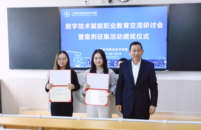 会上,胡展飞校长对数字技术赋能职业教育优秀教学案例进行颁奖。学校于2023年底举办了数字技术赋能职业教育教学案例征集活动,各专业总结凝练在专业建设、课程建设及教学改革中融入数字技术所采取的举措和取得的成效,充分体现时代性、创新性。各教学单位积极组织,深入挖掘并推荐成效显著的案例。教务处对各单位推荐的案例进行初步审核,组织专家组从主要举措、实施成效、经验启示及示范推广等方面对案例进行书面评审,最终评选出一等奖案例2个、二等奖案例4个、三等奖案例6个以及优秀奖案例5个。