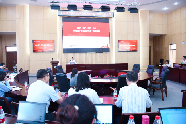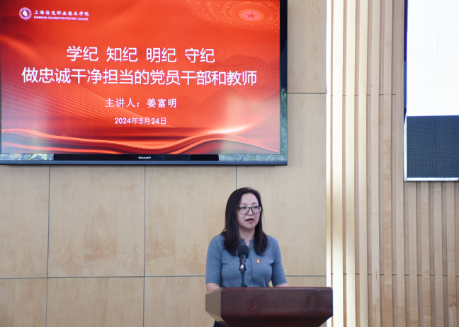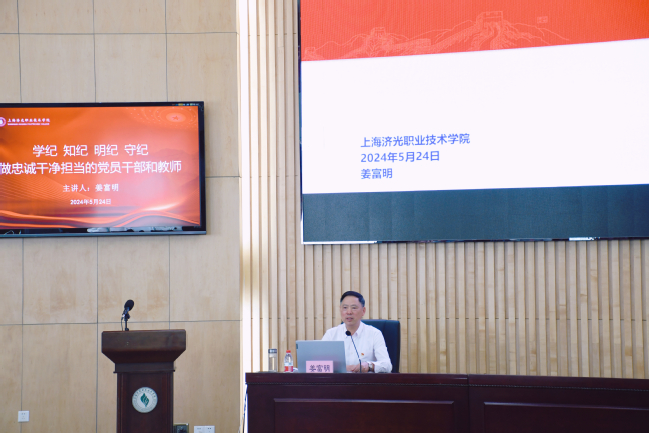 为深入学习贯彻习近平总书记关于加强党的纪律建设的重要论述,切实推动党纪学习教育走深走实,教育引导党员干部和教师学纪、知纪、明纪、守纪,5月24日下午,校党委书记姜富明讲授党纪学习教育专题党课。校党委理论学习中心组全体成员、党员中层干部和基层党组织书记参加学习。本次党课由校纪委书记、党委副书记刘丽主持。