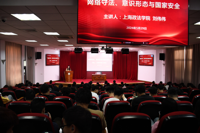 刘伟伟以《网络守法、意识形态与国家安全》为题,用鲜活且富有教育意义的案例为引,生动阐述了网络中的不良行为,深刻剖析了网络意识形态斗争形势与风险防范,并着重强调了总体国家安全观的重要性。他呼吁同学们,要养成良好的上网习惯和行为,掌握基本的避险知识。他指出,各类网络违法行为离我们并不远,需要注意防范网络诈骗、警惕网络钓鱼;谨慎结交网友、学会辨别真伪;保护个人隐私、尊重他人隐私。