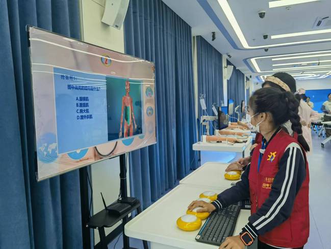 “奇妙的生命之旅”体验项目由护理学院护理专业承办。通过护理学院的老师讲解和3D解剖软件的操作,知悉人体的八大系统及结构分布,从而揭开人体的奥秘,并科普了一些日常生活中常见疾病预防及注意事项,帮助学生们认识身体健康的重要性;通过MR软件体验护理操作,身临其境地体验护理操作的环境和流程;通过新生儿沐浴及抚触使参与者了解婴幼儿沐浴、抚触的基本步骤,同时也加强其对父母的感恩之心;通过让学生体验孕期妈妈怀胎十月的感受,知晓十个月在妈妈的“小房子”里的成长史;通过虚拟仿真技术,运用心肺复苏模拟人来体验心肺复苏流程,让同学们知道在关键时刻能够迅速采取最有效、最正确的急救措施,挽救生命以及正确认识生命的起源和发展,对生命的尊重和爱护,对于如何挽救生命也有了新的领悟。该项目充分整合我校“上海市助产专业示范性虚拟仿真实训基地”的资源,将知识与趣味性完美融合。