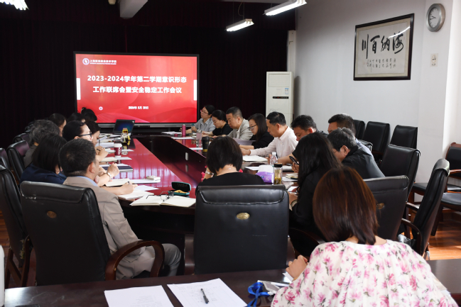 为深入学习贯彻习近平新时代中国特色社会主义思想,进一步加强思想政治引领,牢牢掌握意识形态安全的领导权、话语权和主动权,5月30日,我校在办公楼213会议室召开2024年意识形态暨安全稳定工作联席会第二次会议。校党委书记姜富明、副书记刘丽、副校长王云飞,宣传部、学工部、教师工作部、组织部、后保处、教务处、团委、信息中心、工会、图书馆、杨浦校区管委会负责人,各基层党总支、直属党支部书记等相关人员参加会议。会议由党委副书记刘丽主持。