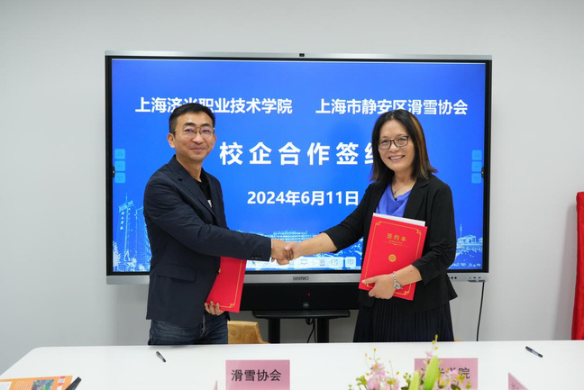 为更好地满足学生多元化发展的需求,促进学生实习就业,6月11日上午,经济管理学院与上海市静安区滑雪协会校企合作签约仪式和产教融合研讨会在学校实训楼七楼会议室进行。上海市静安区滑雪协会会长王栋、秘书长陆裔涵、WOWski运营总监高智乾,上海济光职业技术学院经济管理学院院长张迺英、党总支书记胡春宝、分团委书记庞菲飞出席本次活动。