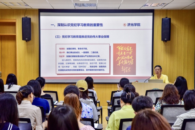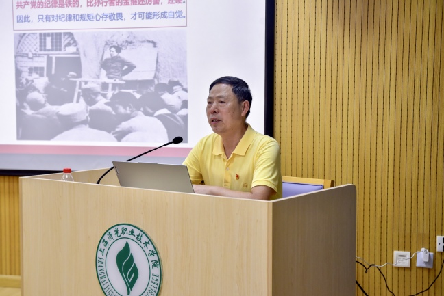 为深入学习贯彻习近平总书记关于加强党的纪律建设的重要论述,切实推动党纪学习教育走深走实,6月14日下午,校党委书记姜富明以“学纪、知纪、明纪、守纪,做忠诚干净担当的党员干部和教师”为主题,为人工智能学院党总支、经济管理学院党总支、机关第三党支部的全体党员和教师讲授专题党课。此次党课由人工智能学院党总支书记张航主持。