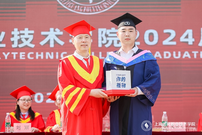 扬梦想之帆,赴星辰大海。一本毕业证书承载着学子三年的汗水与努力,记录着学子对校园生活的所有美好回忆。主席台领导为毕业生代表颁发毕业证书,请毕业生代表上台,送上最热烈的祝福。
