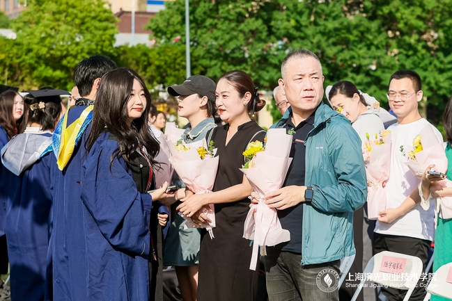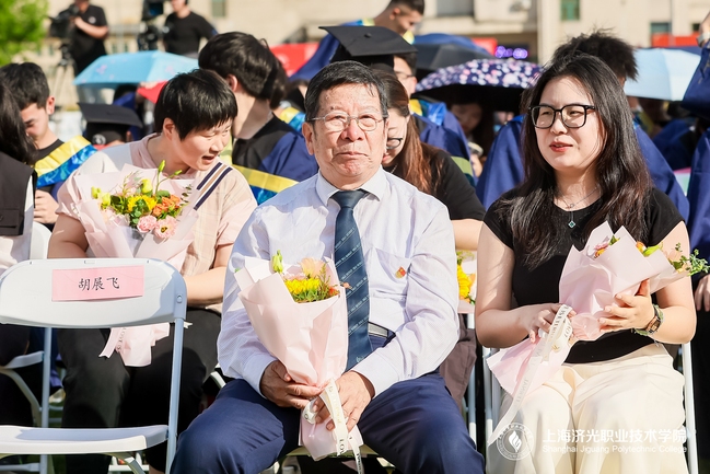 毕业生代表向主席台人员、教职工代表及毕业生家长代表献花,感谢他们用辛勤的汗水、真挚的情感陪伴着学生不断成长。