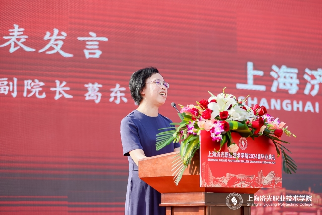 建筑工程学院副院长葛东霞作代表学校全体教师为2024届全体毕业生送上了最真挚的祝福。她寄语学子,希望同学们迈好新起点的第一步,勇敢地承担起人生的责任,实现人生价值,在未来的日子里能掌握更多的知识和技能,坚持学习、不断进取,加强实践、勇于创新,在学习和实践中提高自己、磨练意志、增长见识。