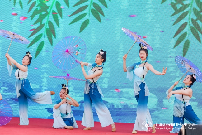 民族舞《西子湖·初妆》精彩呈现,舞步尽显青春的曼妙,学生们跟着音乐升腾灵动的身影魅力四射,为现场观众带来了一场沉浸式的舞蹈盛宴。歌舞表演《灯火里的中国》展现了灯火里繁花似锦的城市面貌以及灯火里生生不息的国家精神,让观众深深的感受到继往开来无比自信的民族文化。舞蹈《功夫》展现出济光学子的进取精神,迸发出广大济光青年投身的饱满热情。