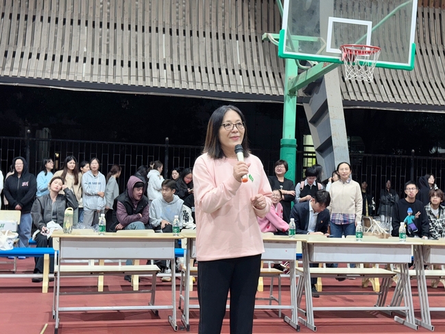 开赛前,张迺英院长发表了热情洋溢的讲话,她提到:中国银行宝山支行与济光学院有长达11年的校企合作。在长期合作过程中,双方开展了党建共建、技能大赛、捐赠帮困等活动。今天我们再次相聚在此开展第二届“中银—济光杯”篮球友谊赛,希望大家秉持友谊第一,比赛第二的准则,赛出友谊,赛出风采!