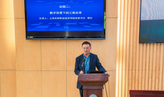 随后,上海农林职业技术学院党委书记蔡红教授深入探讨了数字化背景下的三教改革。蔡教授提出,数字化转型不仅是技术的应用,更是教育思想和方法的革新。他通过分析数字化时代教育的新形态——智慧教育,探讨了未来课堂的发展方向,并提出了“五新”教育理念,即新理念、新体系、新范式、新内容和新治理,为职业教育的改革提供了新的思路。