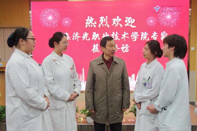 胡展飞校长首先代表学校对儿中心护理团队表示由衷的感谢,他认为,护理职业教育的发展离不开医院的支持,感谢儿中心为济光护理学子提供大量的实习和就业岗位。他在讲话中提到,职业教育肩负着为新质生产力提供“高素质技术技能型”人才的重任,是培养最前线技能的主力军,希望济光和儿中心在协同育人、专业建设等方面,能多方位、多维度地共同探索与合作,打造出真正具有儿中心和济光特色的品牌“订单班”。