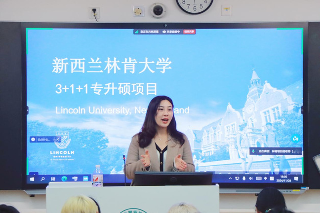 为提升学生的国际化视野,扩宽学生海外升学渠道,由校外事办组织的新西兰林肯大学“3+1+1”专升硕项目宣讲会于11月28日在教学楼414教室和线上腾讯会议同步举行,共吸引全校百余名学生参加。