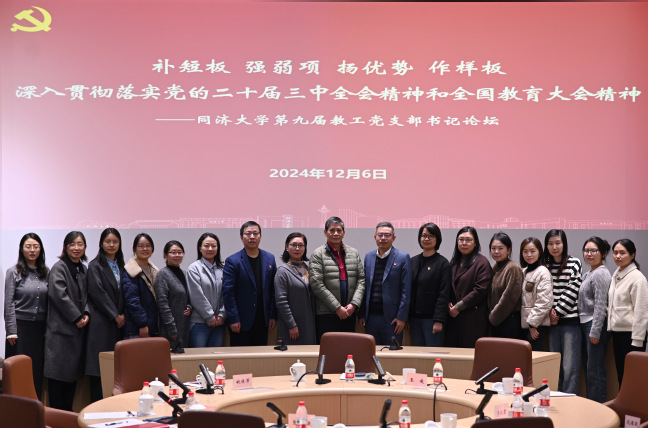 12月6日下午,以“补短板、强弱项、扬优势、作样板,深入贯彻落实党的二十届三中全会精神和全国教育大会精神”为主题的同济大学第九届教工党支部书记论坛在四平路校区中法中心C501会议室举行。受同济大学邀请,我校党委组织部部长姚桂芳、教师工作部部长李仪君以及基层党组织书记和支部委员等15位代表参加论坛。