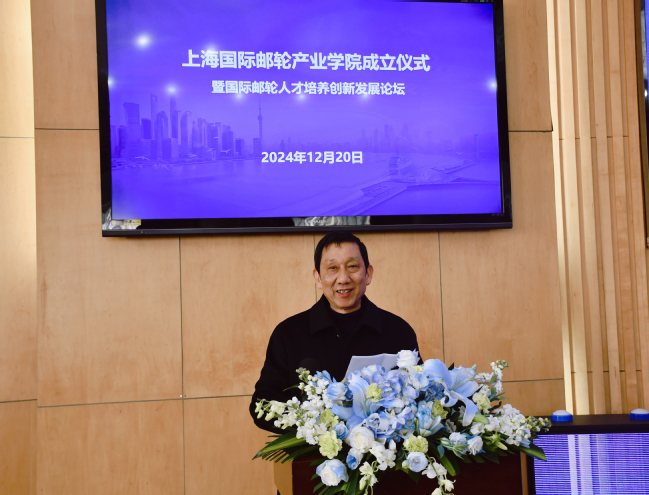 2024年12月20日,上海国际邮轮产业学院成立仪式暨国际邮轮人才培养创新发展论坛在我校隆重举行。 上海市民办高校党工委副书记江鸿波、上海市人力资源和社会保障局职业能力建设处副处长王波,上海现代服务业联合会航运和邮轮经济专委会名誉主任、中国邮轮发展专家委员会副主任孙卫国,宝山区人力资源和社会保障局副局长张淑红、副局长宁学敏,上海市就业促进中心原副主任顾国萍,上海市建设协会副会长顾建国,同济大学科技园副总经理赵念,上海吴淞口文旅投资(集团)有限公司党委委员、副总经理杨宝忠,地中海邮轮船务(上海)有限公司人事总监王吉炜,皇家加勒比游轮船务(中国)有限公司高级副总裁、亚洲区主席刘淄楠,上海蓝梦国际邮轮股份有限公司董事陆光原,上海华洋海事科技有限公司总经理包仁松,上海吴淞口国际邮轮港发展有限公司徐红副书记,华夏国际邮轮有限公司人力总监吴健等众多企业嘉宾莅临现场,我校校长胡展飞、党委书记姜富明、副校长孙遥,相关职能部门负责人、经济管理学院师生出席启动仪式。会议由经济管理学院副院长林俊主持。