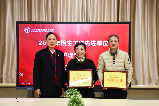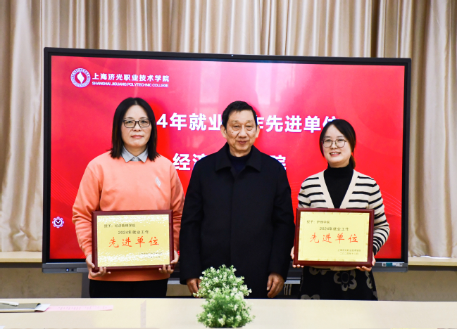 护理学院和人工智能学院被评为2024年招生工作先进单位;经济管理学院与护理学院被评为2024年就业工作先进单位。胡展飞校长、姜富明书记分别为获奖单位颁发了奖牌。