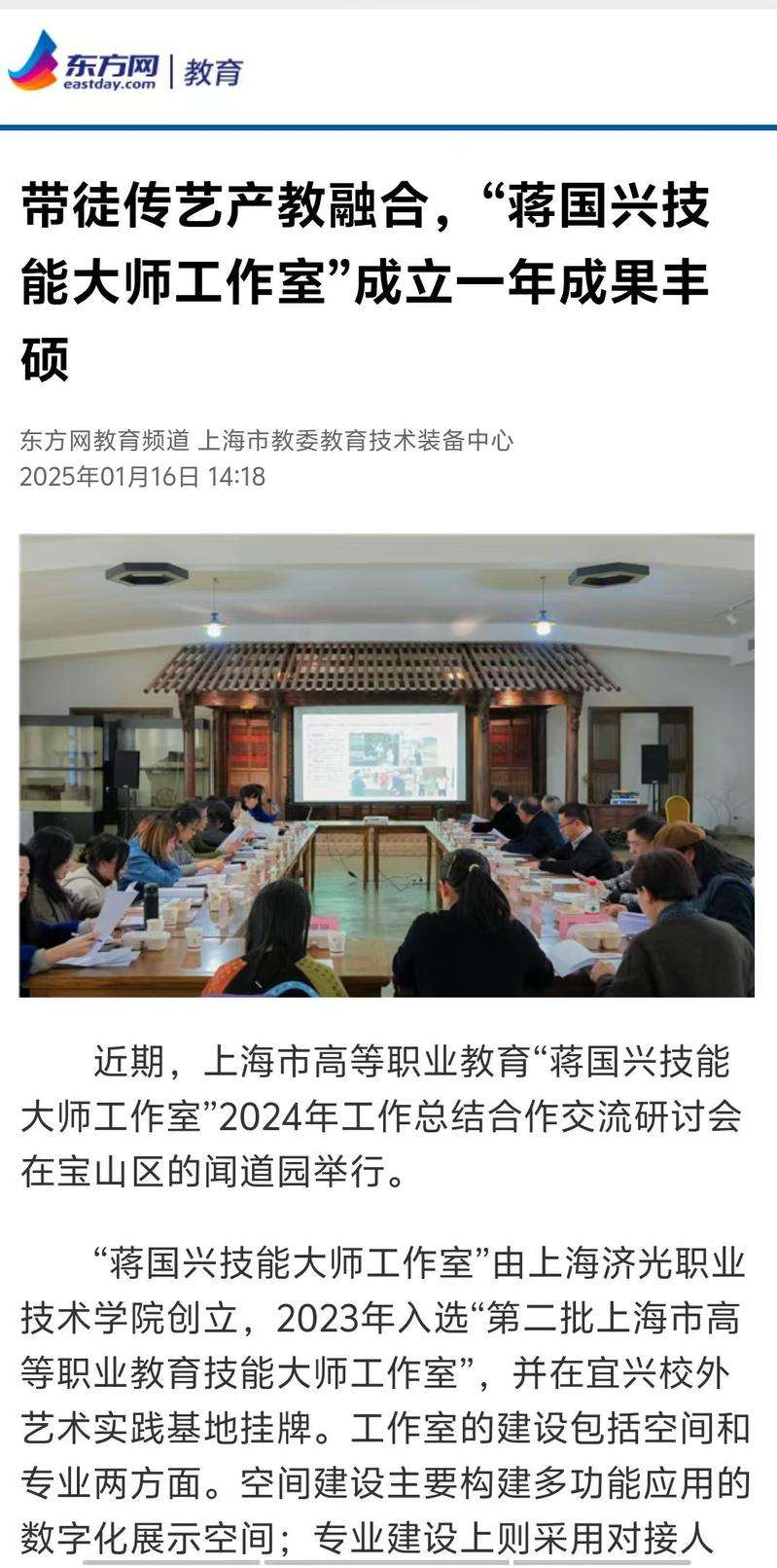 近日,东方网教育频道专题报道了“蒋国兴技能大师工作室”2024年工作总结合作交流研讨会。