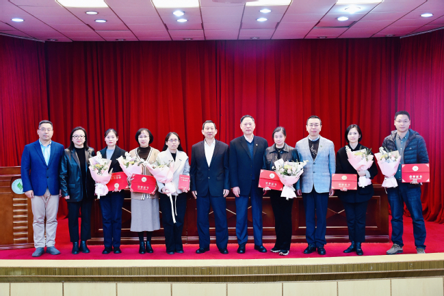 大会还表彰了上海市“东方英才”计划教师项目获得者及获得2024年度“同·济”奖教金的五个项目团体。刘丽宣读了表彰决定,校党政领导班子为获奖代表颁发荣誉证书并献花。受表彰的个人及项目团体分别是:李娜(入选2024年东方英才计划教师项目)、建筑工程学院建筑智能化工程技术专业群教师团队(入选上海新一轮首批高水平高职专业群建设名单)、建筑工程学院“建筑工程技术专业教学资源库”项目(入选第四批上海职业教育市级示范性专业教学资源库立项建设名单)、经济管理学院《经济法基础》教学团队(获批上海市高等职业院校市级精品在线开放课程立项项目)、人居环境与建筑设计学院《建筑材料与构造》课程教学团队(获批上海市高等职业教育市级精品在线开放课程立项项目)、人居环境与建筑设计学院(获全国教育系统先进集体)。