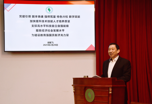 胡展飞对学校新学期重点工作进行部署。他强调,一要加快提升技术技能人才培养质量,面向国家、区域经济社会发展和新质生产力的发展要求,培养现场工程师与若干卓越工程师,注重学生全面发展,注重国际视野和国际交流能力;二要强化科教融汇、产教融合协同育人和“工学交替”的培养体系,强化项目化、模块化教育;三要把“强服务、强贡献”导向作为学院改革发展的底层逻辑,在融入服务科技发展、国家战略和区域经济社会需求的“大循环”中发展壮大,做优做强;四要打造“AI+”课程资源库及开放共享机制,推进“AI+”覆盖所有专业、AI公共课程覆盖全体学生、AI素养能力要求覆盖教改项目,促进AI与科研融合;五要启动成本预算绩效管理试点,落实预算绩效管理理念,加强内控机制建设,找准降本增效和管理优化关键点;六要坚持师生至上、生命至上,把安全工作想在前、谋在前、干在前,坚决守牢校园安全防线底线,为推动学院高质量发展营造高水平安全环境。