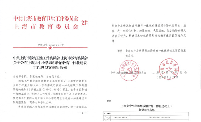 喜讯:我校案例入选上海大中小学思想政治教育一体化建设工作典型案例